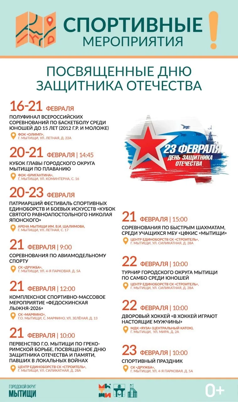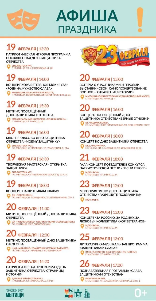🪖Программа мероприятий ко Дню защитника Отечества в Мытищах.
