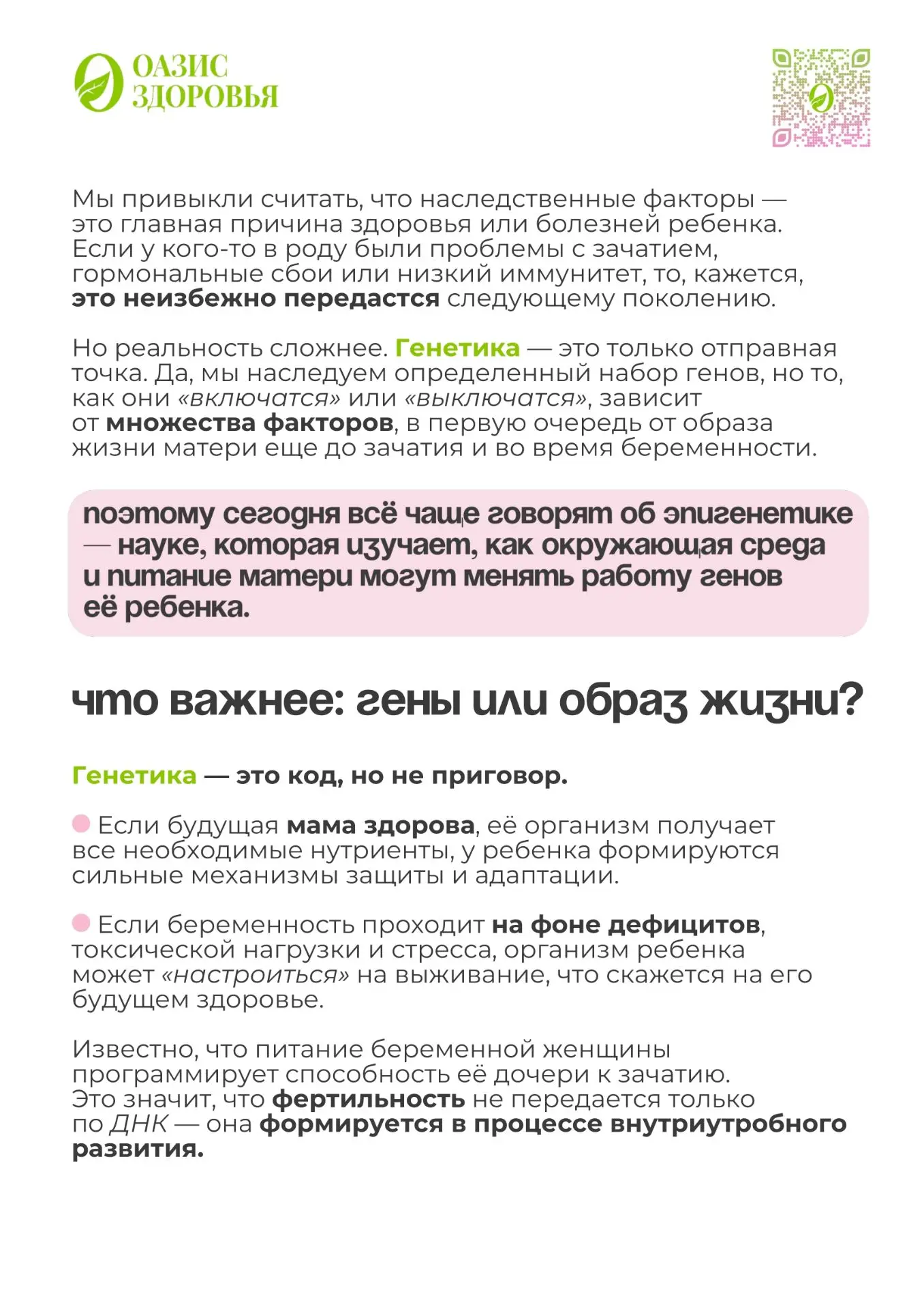 Кто управляет здоровьем ребенка: гены или образ жизни матери?