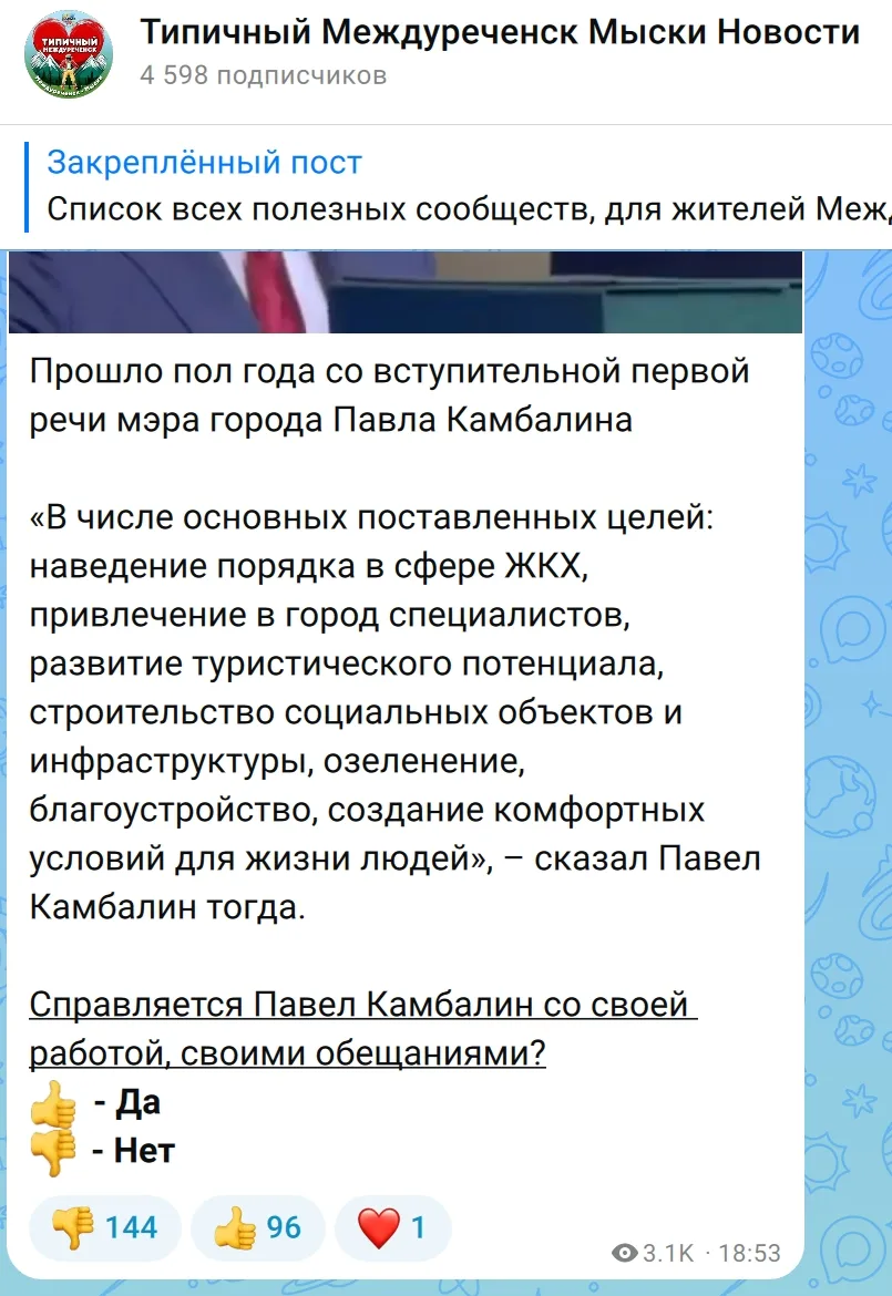 «В числе основных поставленных целей: наведение порядка в сфере ЖКХ, привлечение в город специалистов, развитие туристического потенциала, строительство социальных объектов и инфраструктуры, озеленение, благоустройство, создание комфортных условий для жизни людей», – сказал Павел Камбалин тогда.