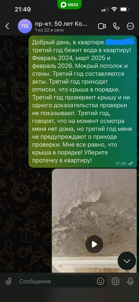 Каждый год одна и та же песня: приходят, составляют акт, пишут «очистка кровли произведена». А по потолку видно, что он скоро просто обвалится. Помогите, подскажите, что необходимо делать в такой ситуации?
