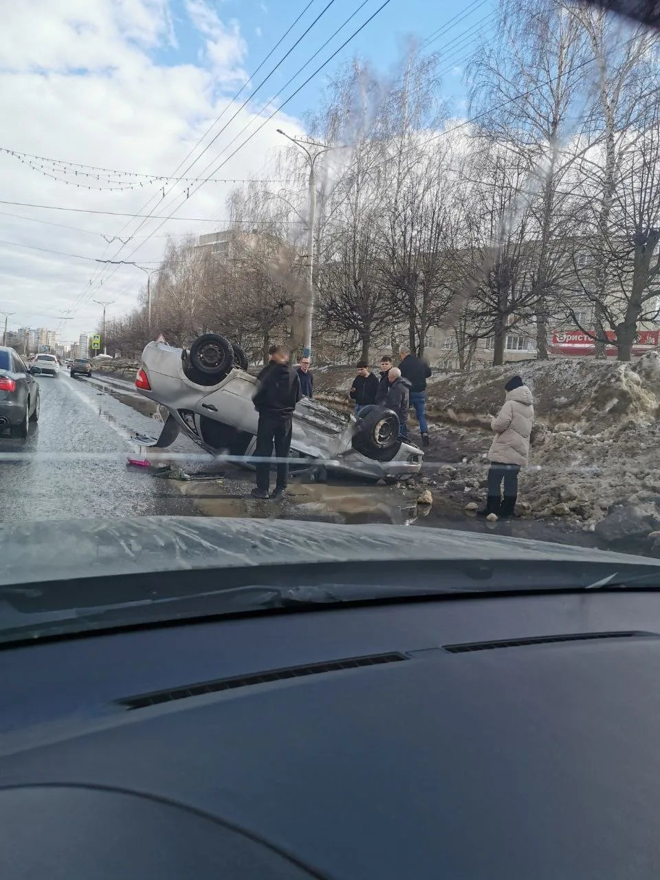 «Гранта» опрокинулась и легла на крышу на Винокурова в Новочебоксарске у пожарной части.