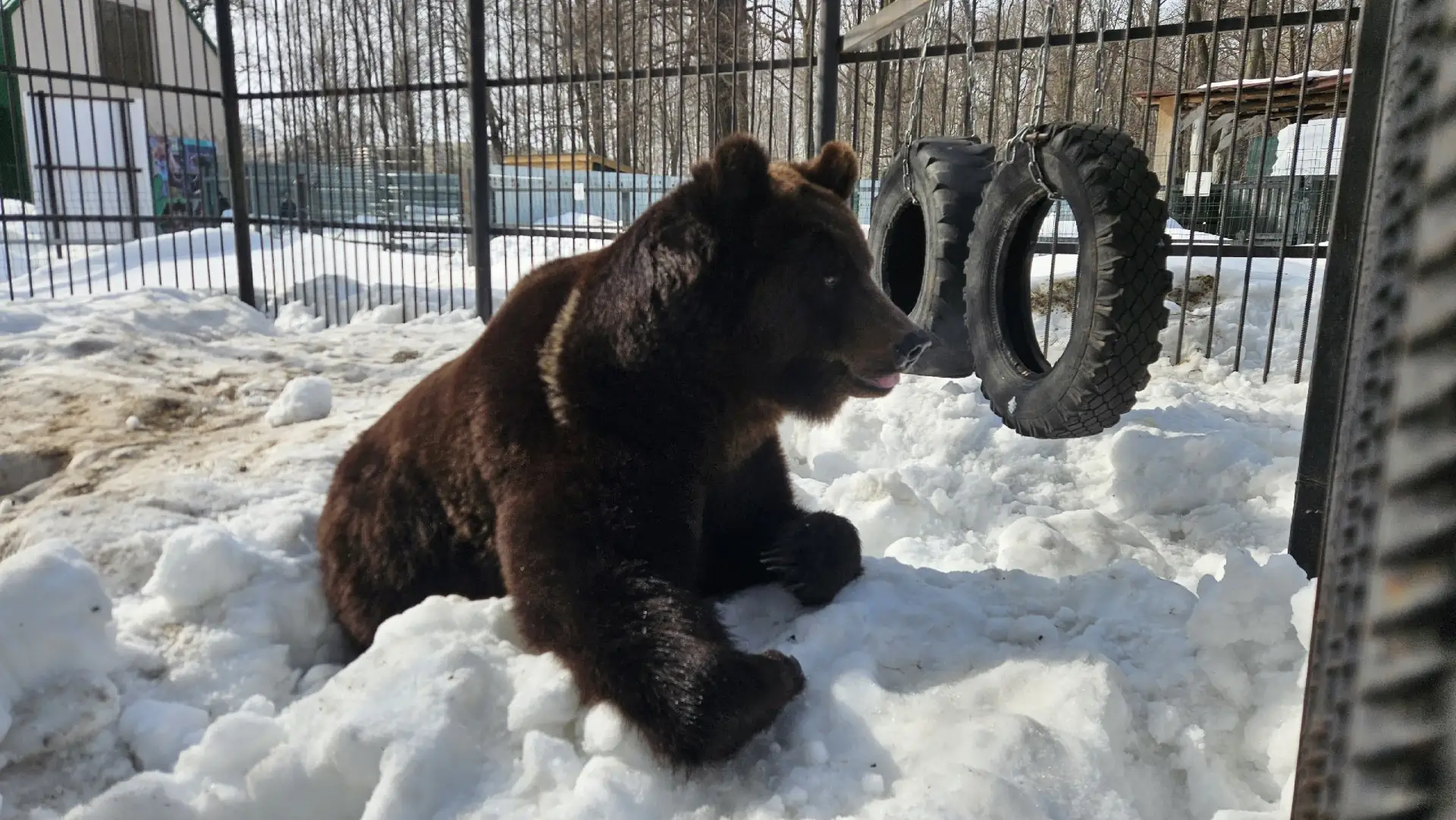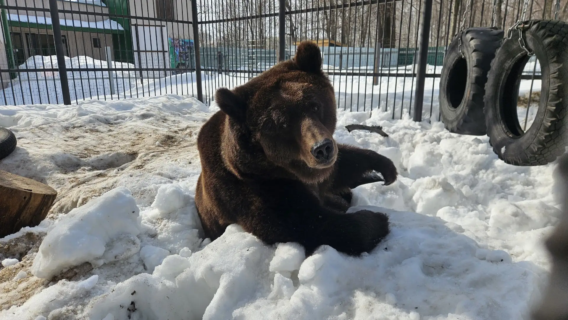 🐻 В Новочебоксарском зоопарке медведь Потап все активнее встречает весну.