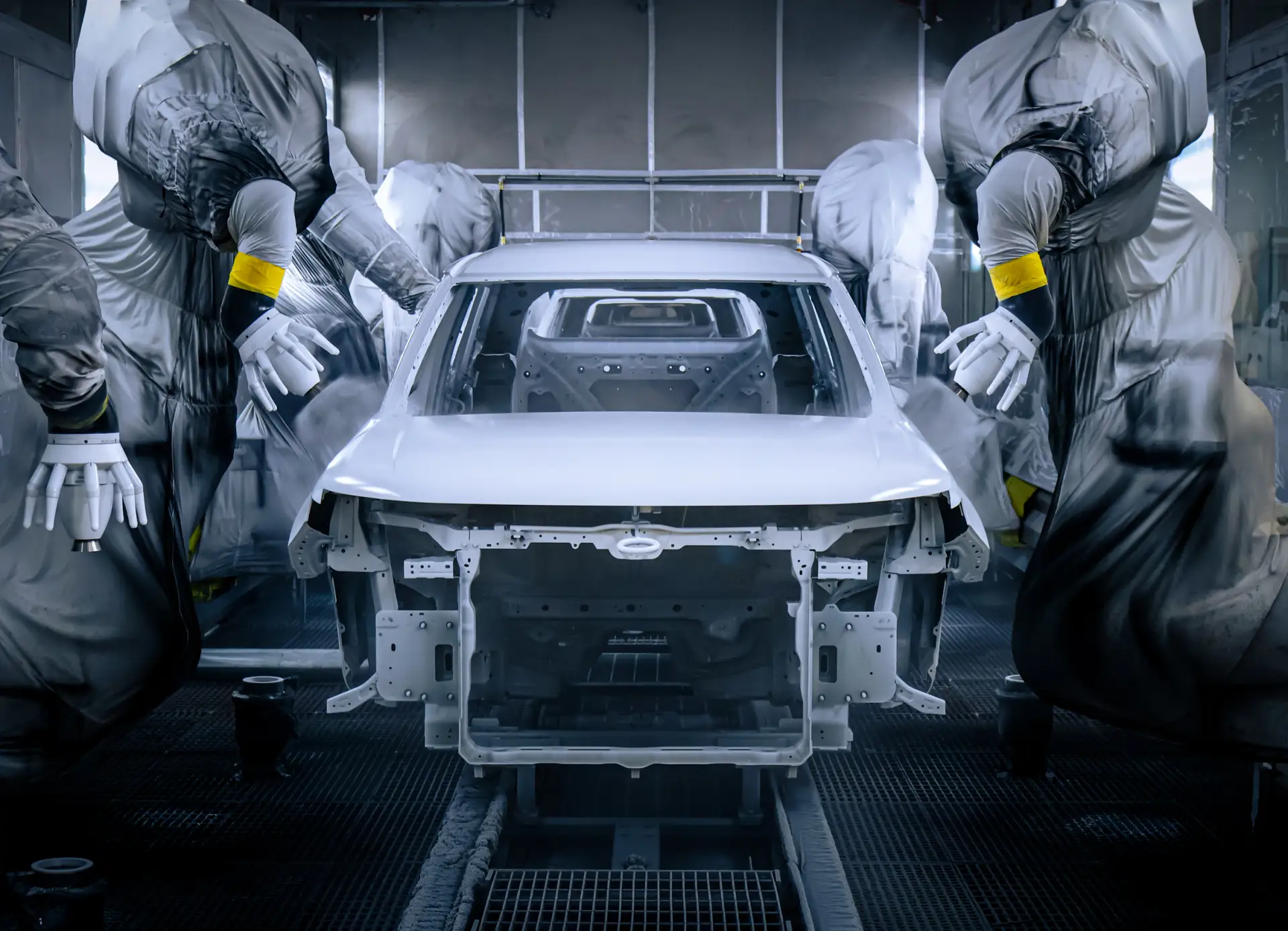 Завод внедрил окраску «мокрым по мокрому». Базовый слой заливают лаком без промежуточной сушки. Всю грязную работу делают 34 робота. Они же наносят герметик и защитные составы.