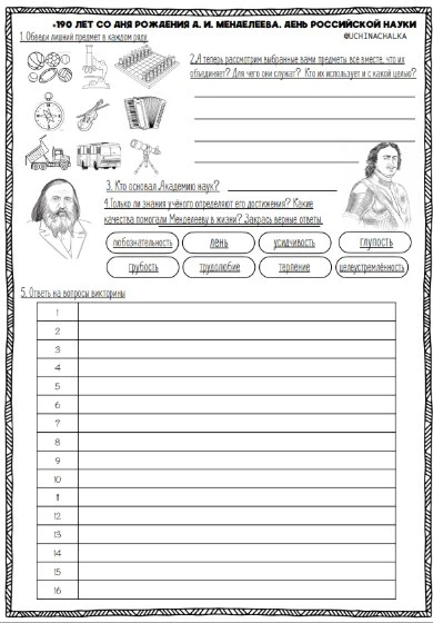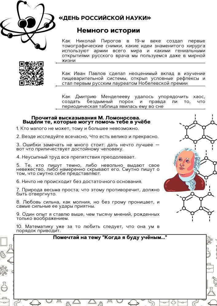 ❤ Рабочие листы «Разговоры о важном» «День российской науки».