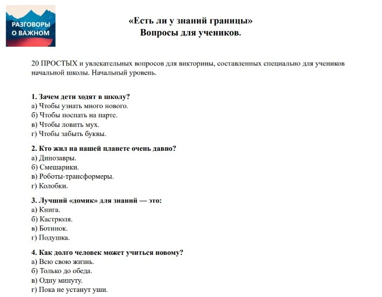 ❤ Подборка из 20 (🔥ПРОСТЫХ ) вопросов для Начальной школы, с вариантами ответов.