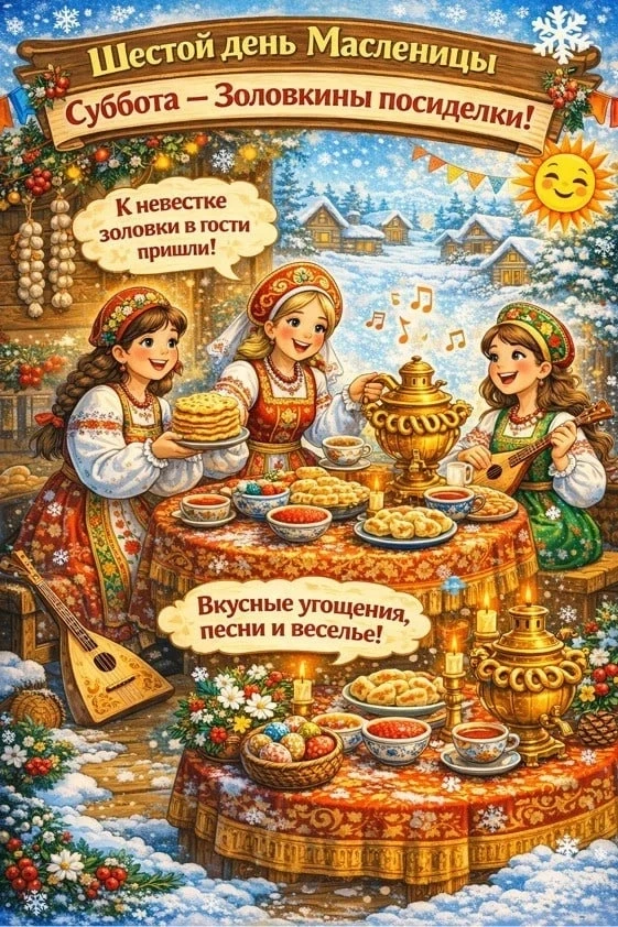 ✓ Иллюстрациями: блины, матрёшка, гармонь, дети в народных костюмах