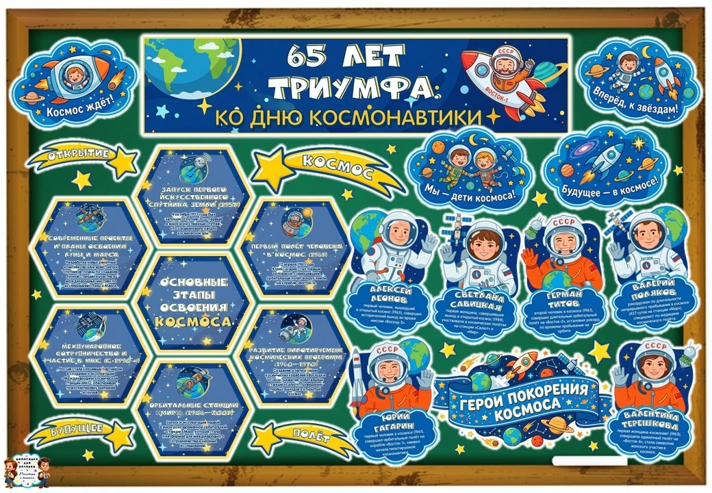 ⚡ Оформление доски "65 лет триумфа. Ко Дню космонавтики"