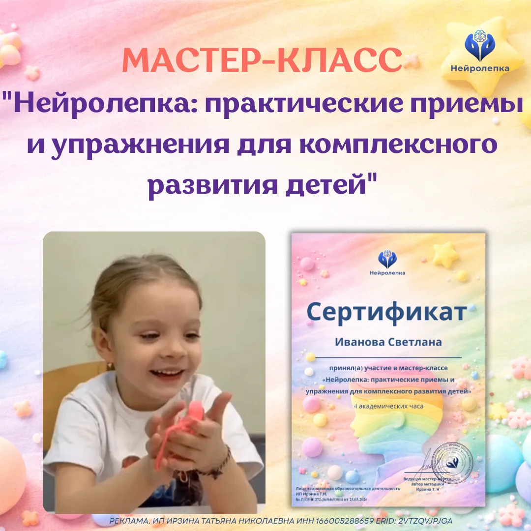 🌺 Приглашаем вас на бесплатный практический мастер-класс «Нейролепка: практические приёмы и упражнения для комплексного развития детей»