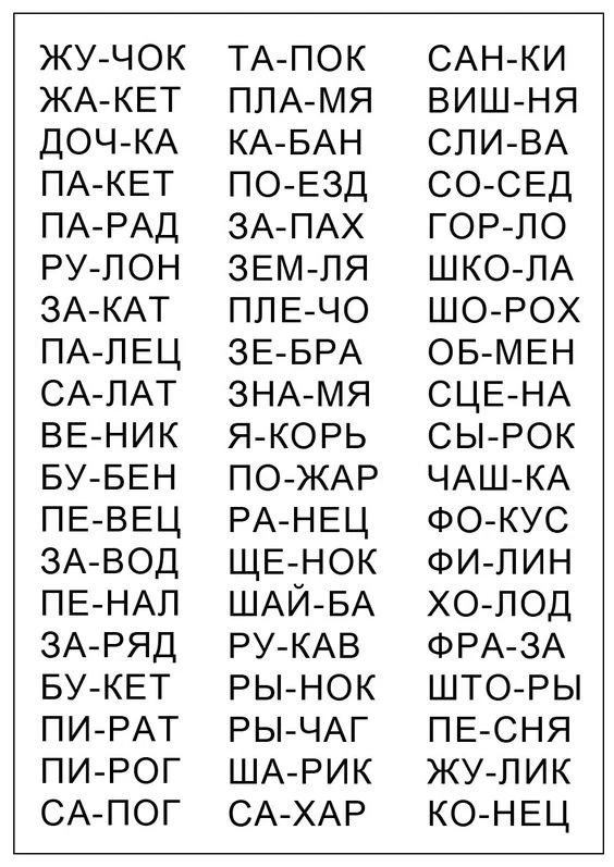 Читаем столбики слов ✅