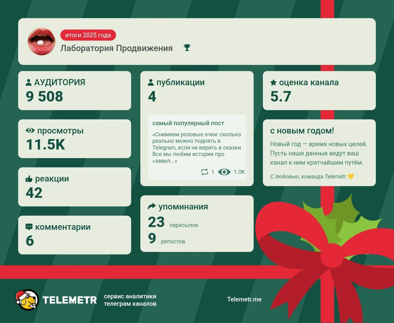Итоги 2025 года по каналу [Лаборатория Продвижения 💊](https://t.me/lab_promo)