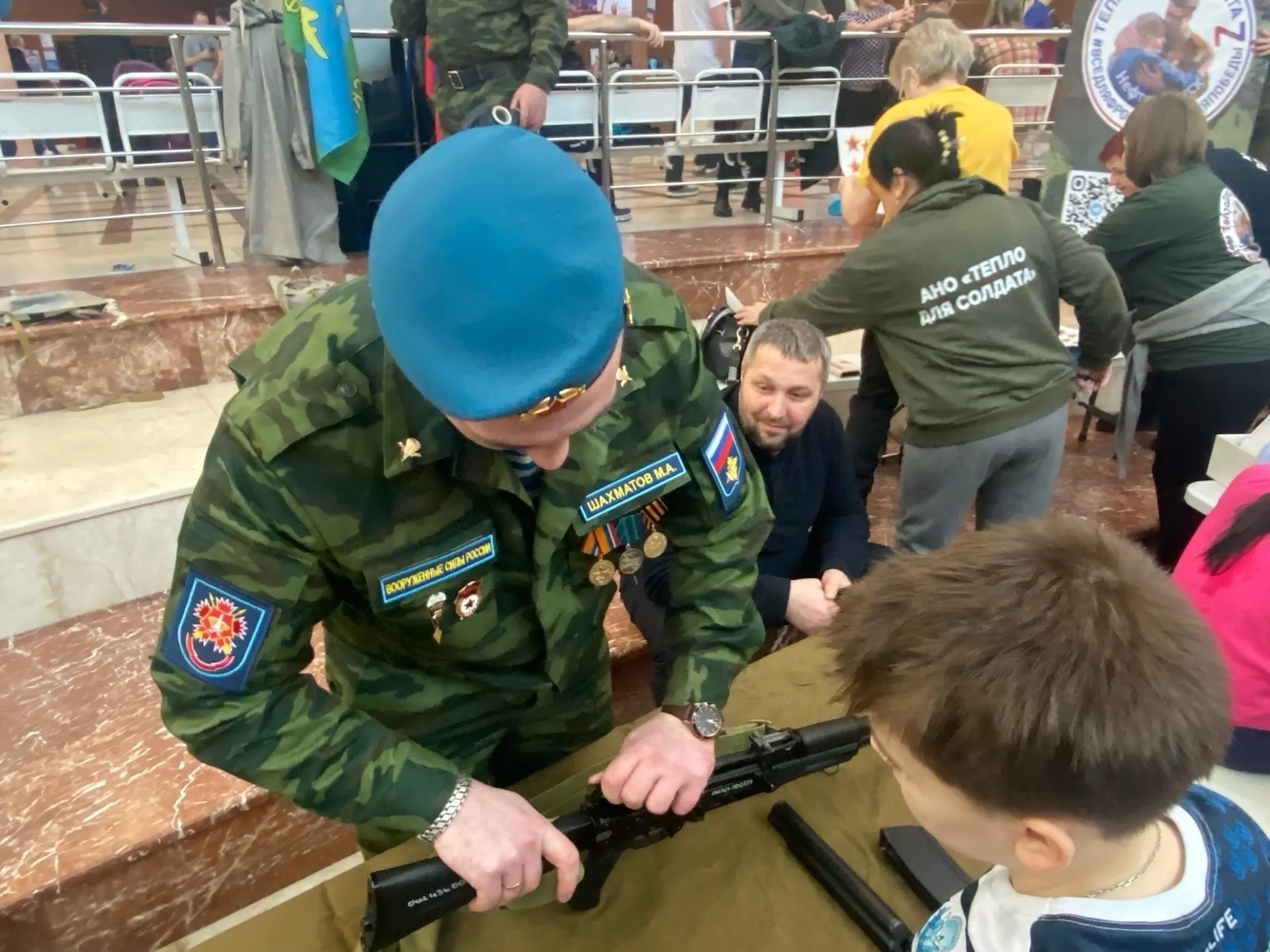 Особенностью выставки стало то, что все экспонаты можно не только увидеть, но и потрогать своими руками. ✋ Гости смогли попробовать разобрать и собрать автомат Калашникова, что вызвало неподдельный интерес у любителей техники и истории. 🛠️ Также была организована зона, где можно было потренироваться в оказании первой медицинской помощи — важный навык, который может пригодиться каждому. 🚑