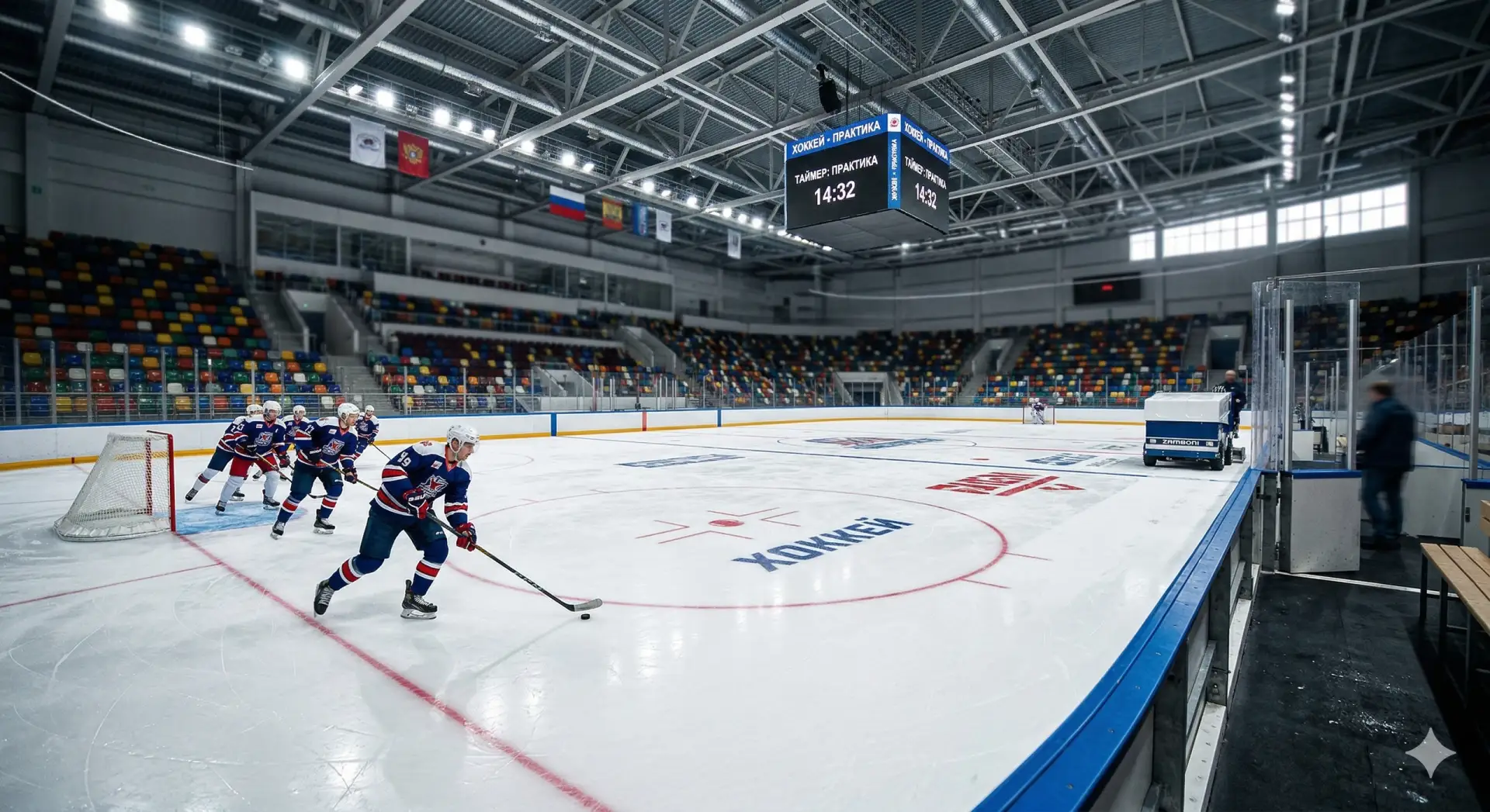 Завершается обустройство входных групп. Ледовый дворец в Сургуте, расположенный напротив здания УМВД, готов более чем наполовину. В Стройкомплексе Югры информируют о текущем состоянии строительства спортивного объекта. В настоящее время подрядчик занимается укладкой основания под хоккейную площадку и одновременно прокладывает внутренние инженерные коммуникации для тепло- и водоснабжения. В ближайшее время начнётся установка основного оборудования — холодильной системы.