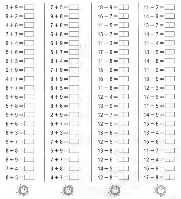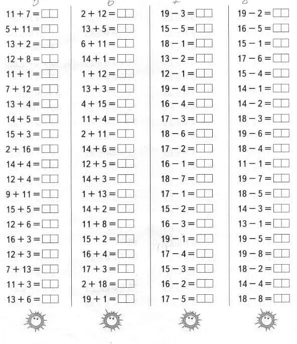 Сложение и вычитание в пределах 20