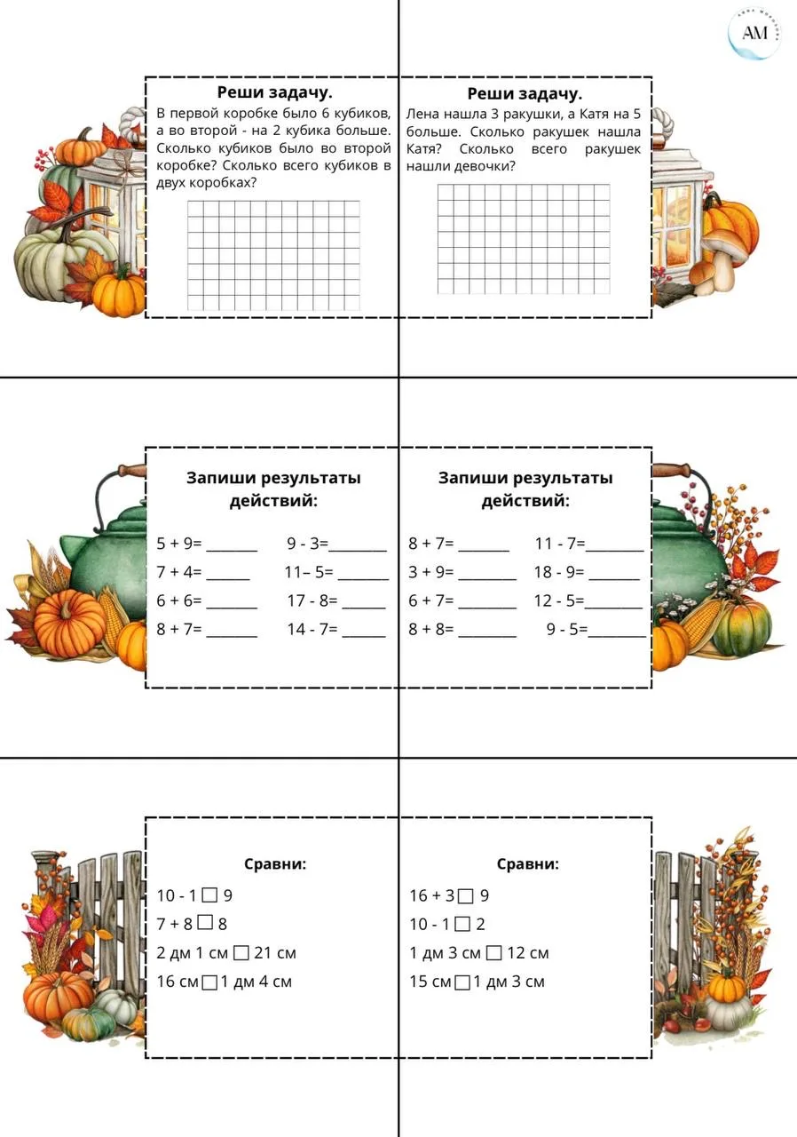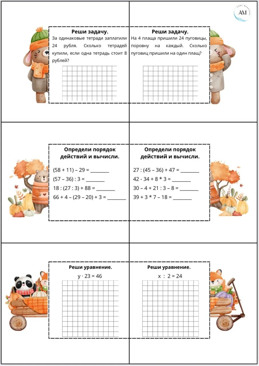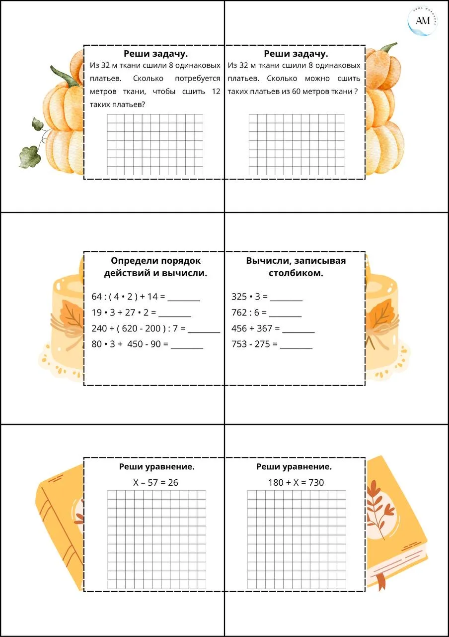 🗓️ Карточки «Решение задач», 3, 4 класс