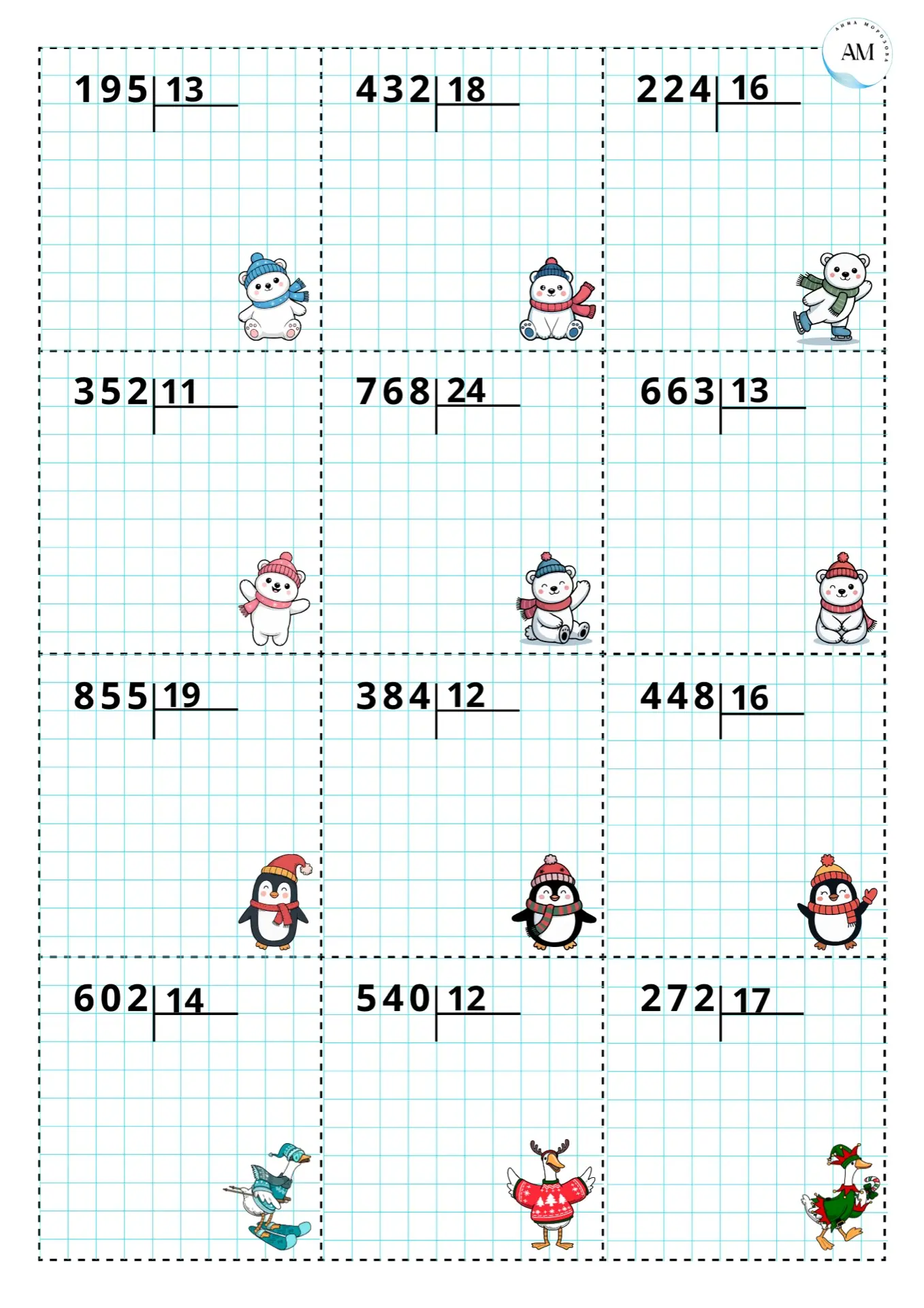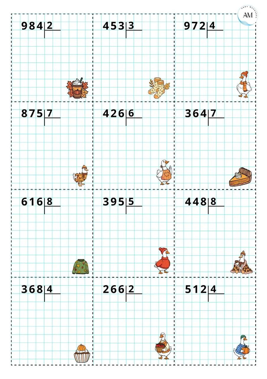 🗓️ Карточки «Деление на двузначное число», 4 класс