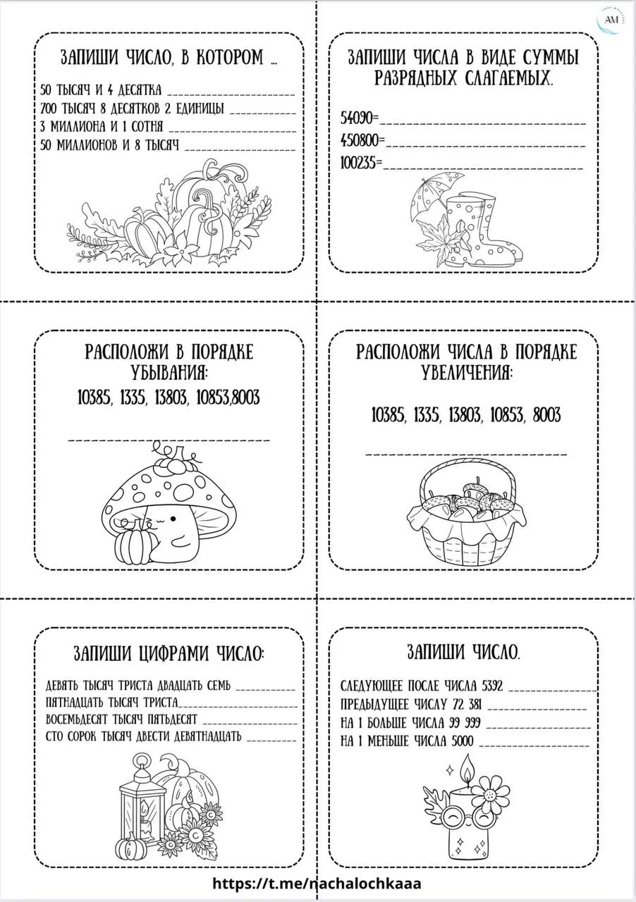 🗓️ Устный счёт с 1 по 4 класс