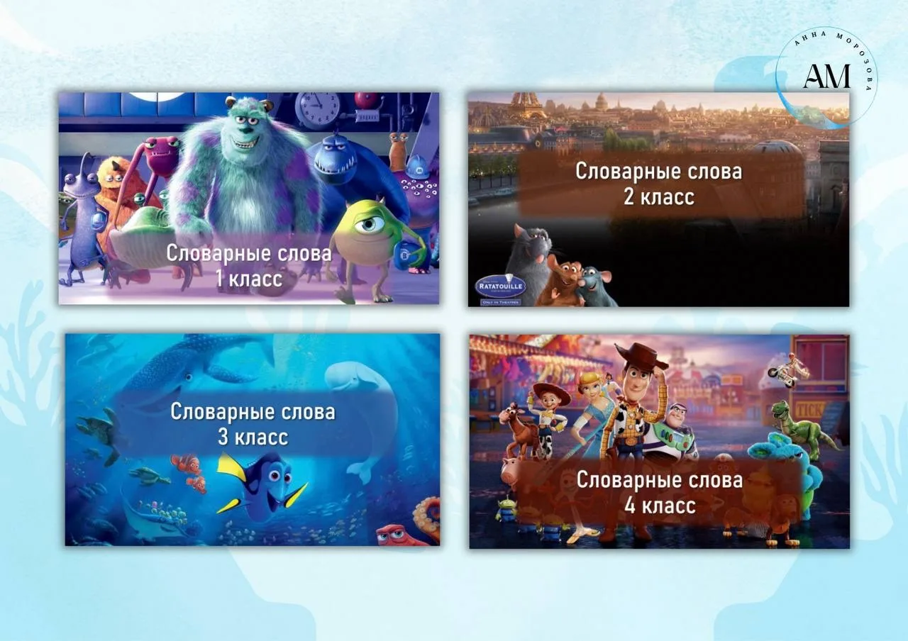 Наконец-то готова долгожданная папка с интерактивными презентациями по словарным словам, вдохновленными мультфильмами Pixar! 🤩
