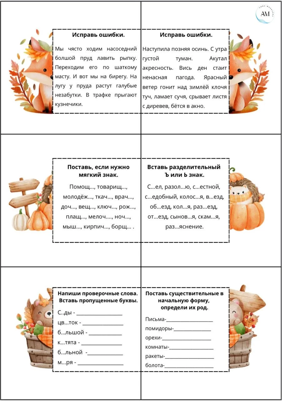 🗓️ Карточки по словарной работе с 1 по 4 класс