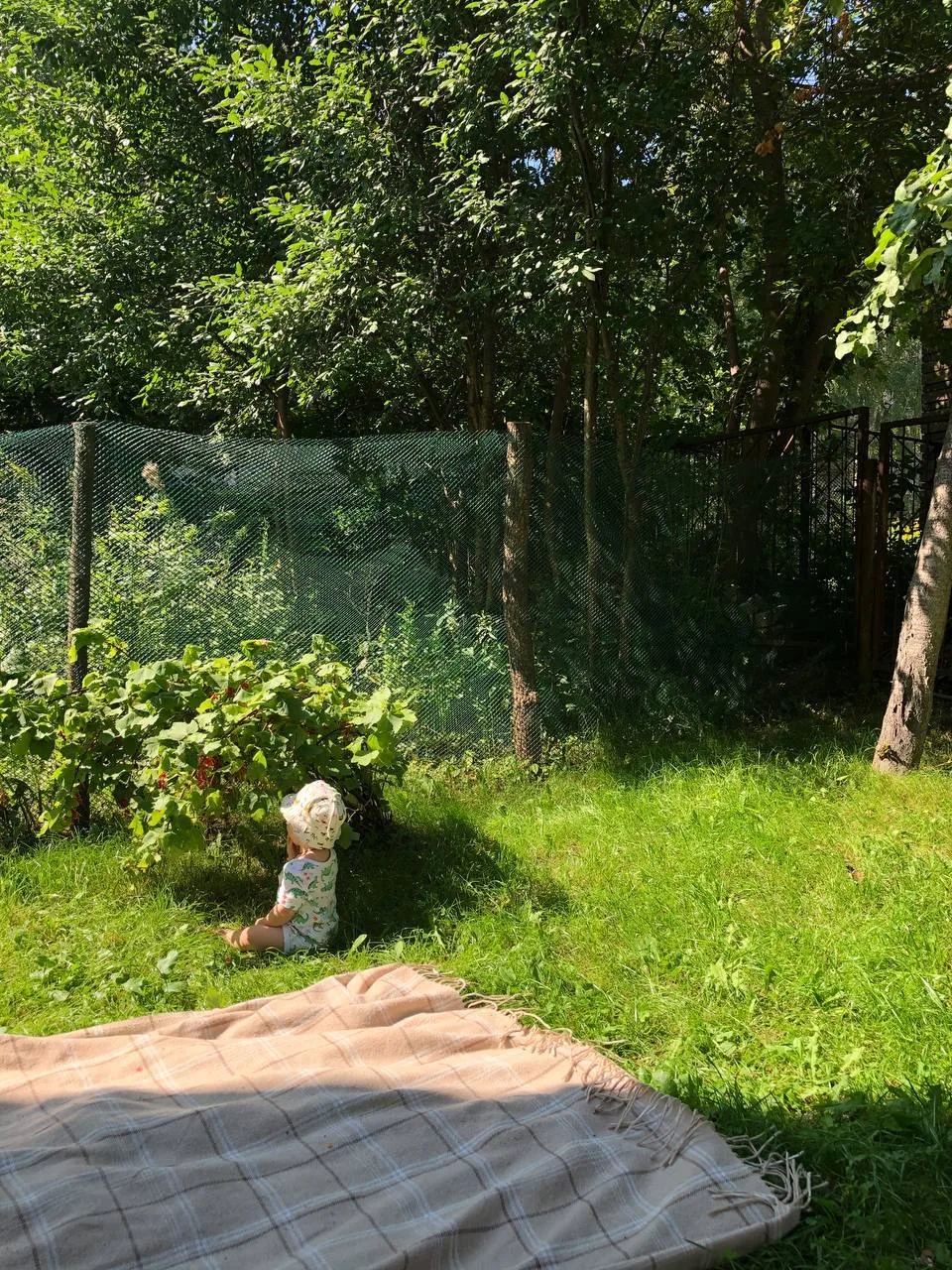 В первое лето с младенцем нам удалось оценить всю прелесть такого зеленого «островка» у дома, когда Мирон купался в маленьком бассейне, делал первые шаги босиком по траве, срывал ягоды смородины и ел их, качался в гамаке, наблюдал за улитками и другими насекомыми, слушал пение птиц….)) Всё как в деревне или на даче, только мы в городе (Нижнем Новгороде!)