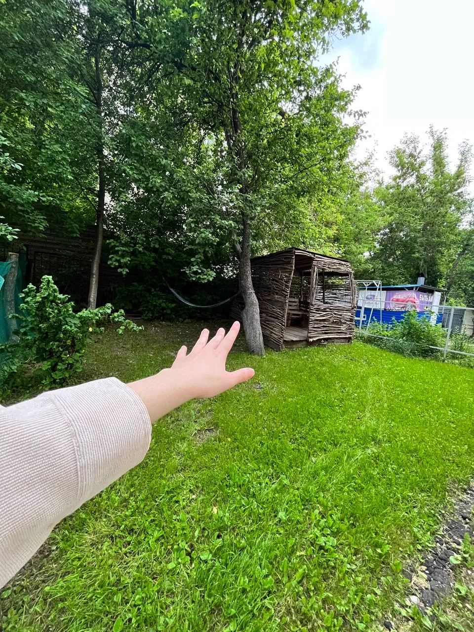 Несмотря на то, что мы живём не в частном доме, у нас есть возможность выйти из квартиры и оказаться на природе. Всё потому, что под окнами расположен небольшой садовый участок, где мы посадили газон и построили беседку.