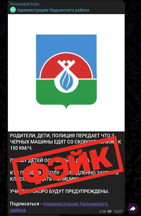 Внимание! В сети Телеграм продолжается кибератака, создан фэйковый канал администрации Надымского района, в котором распространяется недостоверная информация. Просим вас доверять только официальным источникам, и не поддаваться панике.