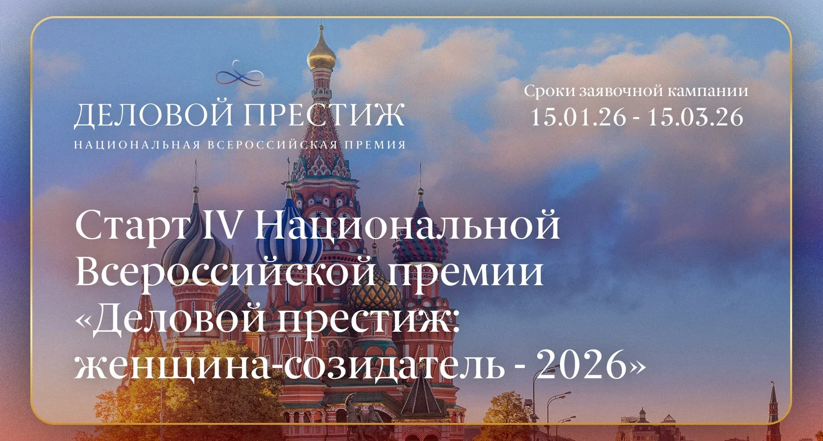 📍 Открыт прием заявок на IV Национальную всероссийскую премию «Деловой престиж: женщина-созидатель - 2026»