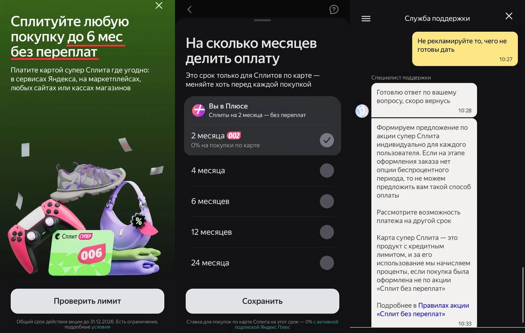 ℹ️ Напомню, ранее некоторых клиентов уведомили, что Сплит на 2 месяца без % у них теперь действует только в сервисах Яндекса и у партнеров.