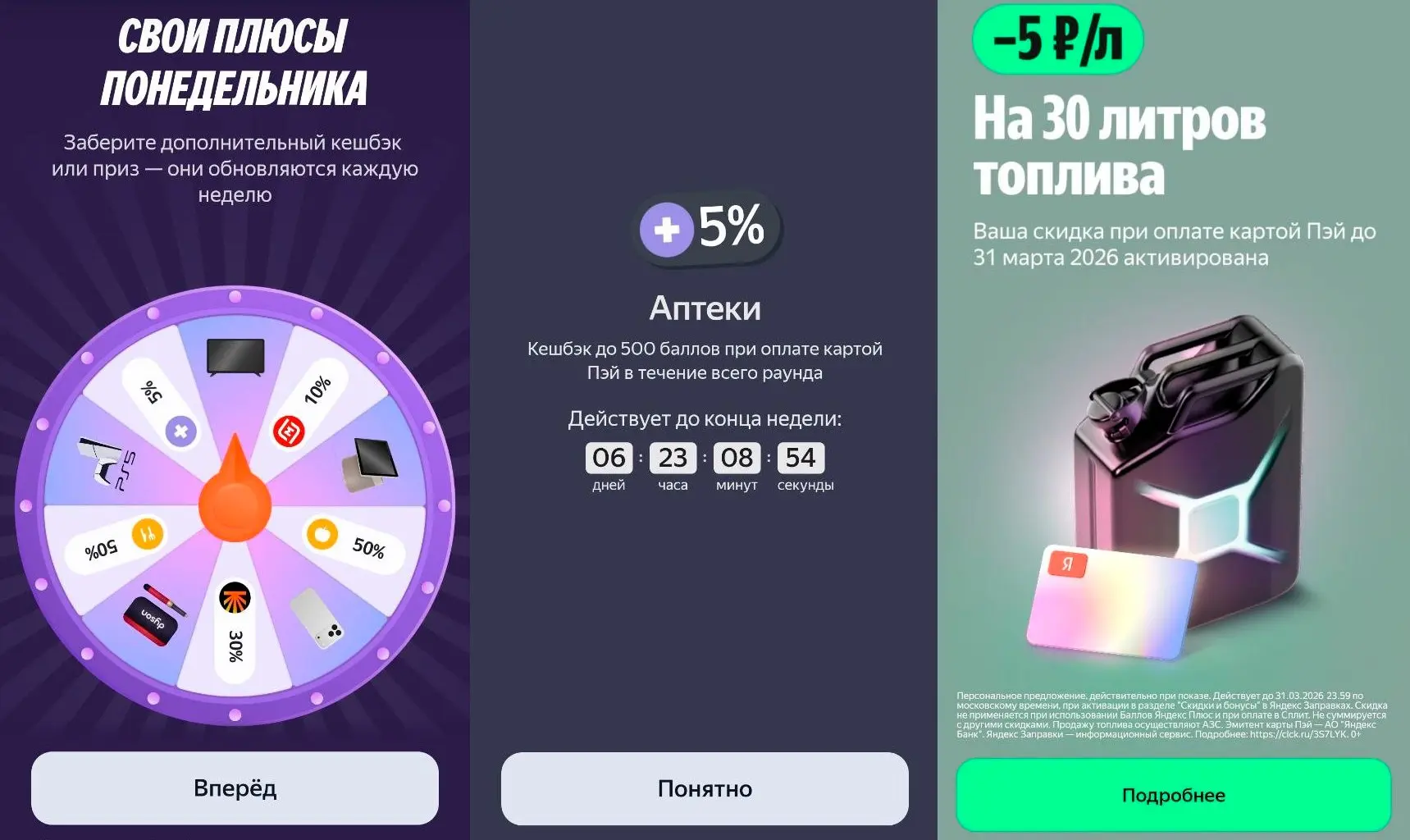 ⚡️ В Яндексе ищите барабан выгоды по ссылке или в разделе Выгода в марте → Больше кешбэка или призы (есть не у всех):