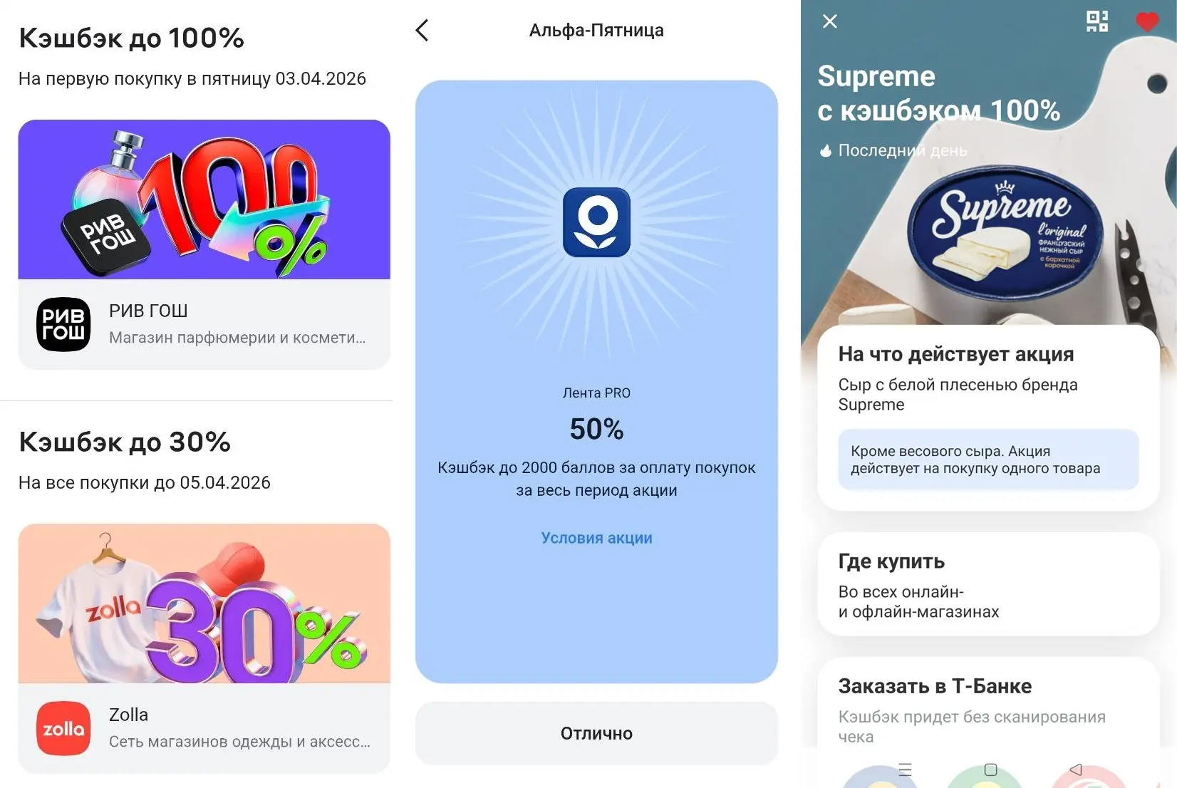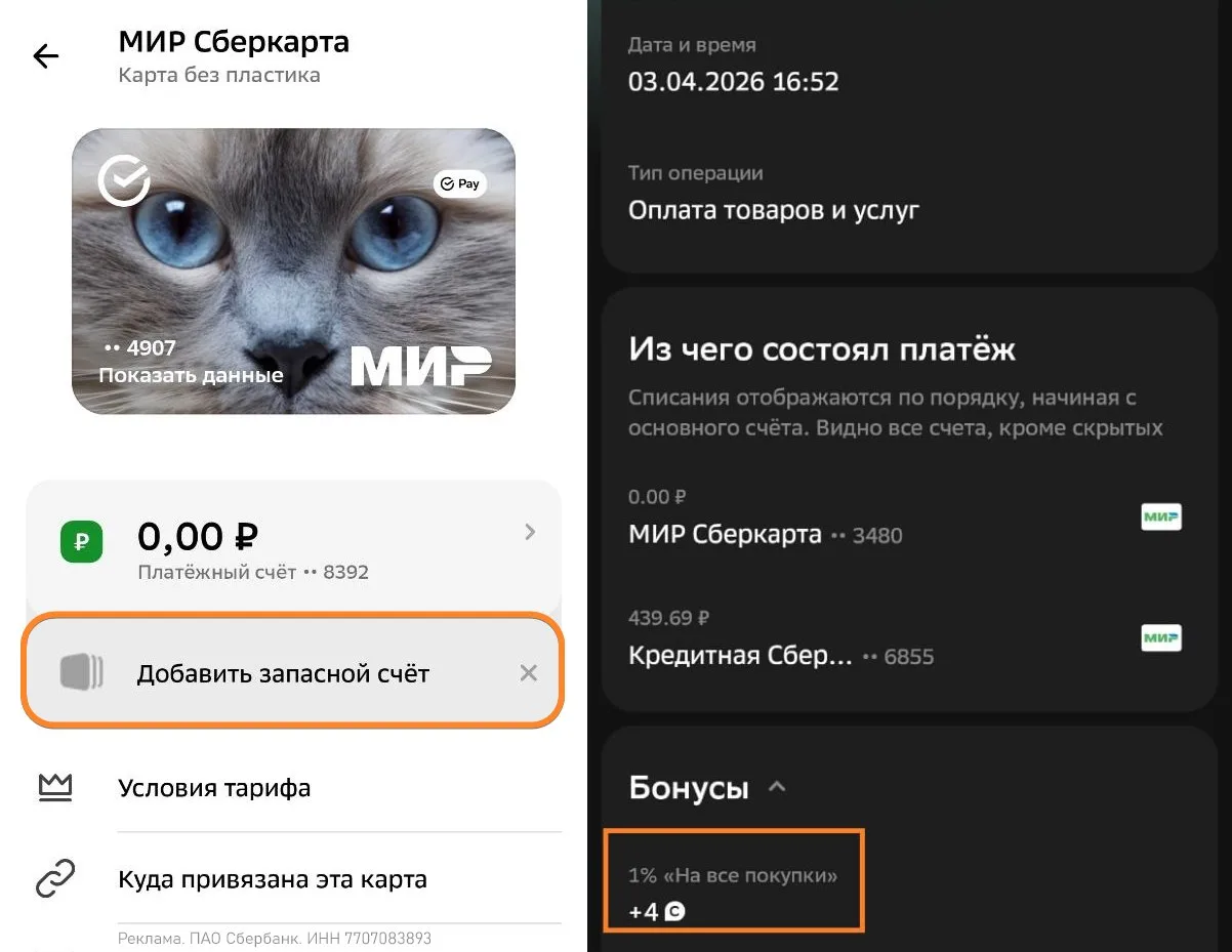 🎁 По этой ссылке по 15.04.26 (должны продлить) — кэшбэк 25% на всё, макс 500б/мес и 1500б всего в первые 3 месяца при тратах от 5к/мес для лиц без карт банка от 6 мес; подробности