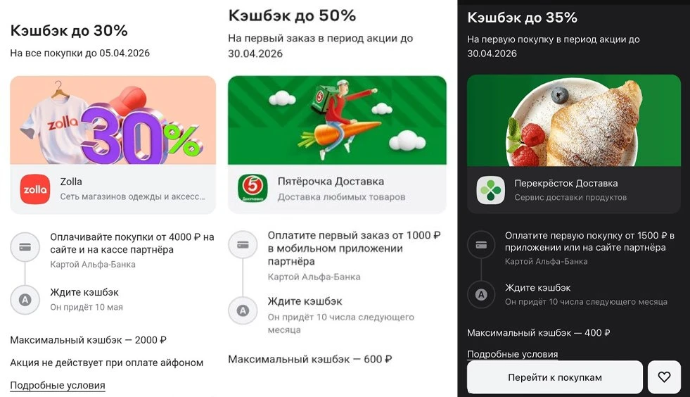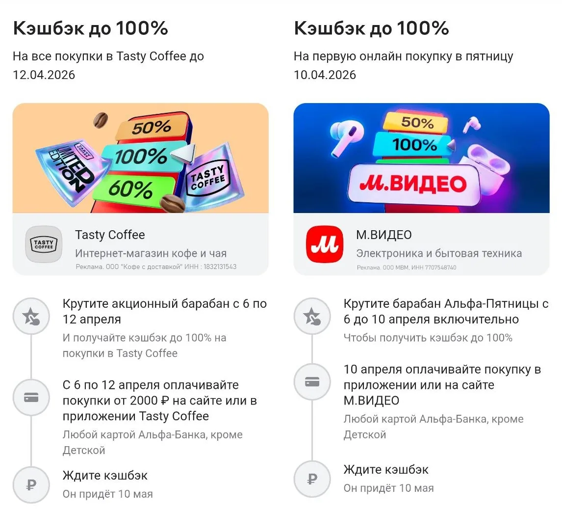 ⚡️ По 13.04.26 действует ещё одна акция с сертификатами за оформление кредитки Альфа-Банка: