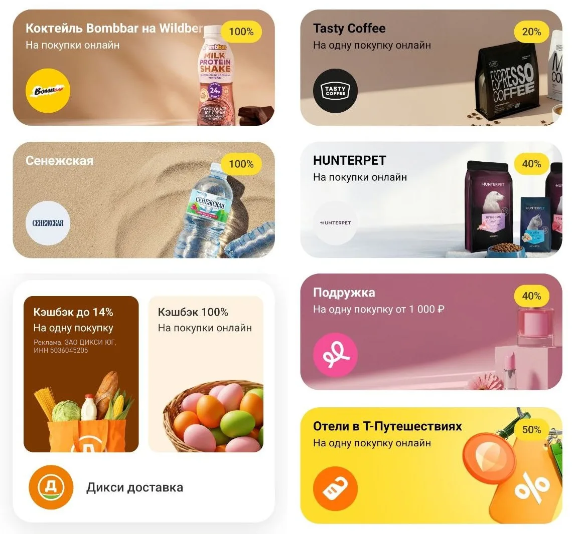 🎲 Из приятного здесь – в список призов вернулся кэшбэк 50% на кафе и рестораны; остальные – 5% на аптеки, 10% на Магнит, 50% на продукты (в т.ч. MCC 5300 - Ozon/WB и др), 30% на Кинопоиск + осталась техника. MCC категорий.