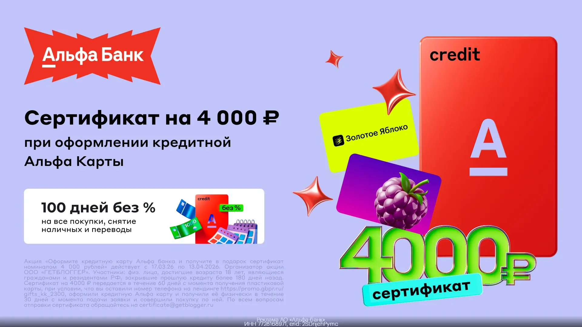 💳 Кредитка Альфы будет бесплатной при оформлении по этой ссылке по 19.04.26 + 4000₽ дарят тем, у кого ее нет от 180 дней (по ссылкам подробности):