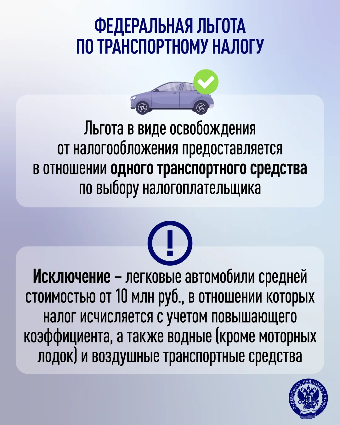Напоминаем про дополнительные льготы по транспортному и земельному налогам, введенные Федеральным законом📍