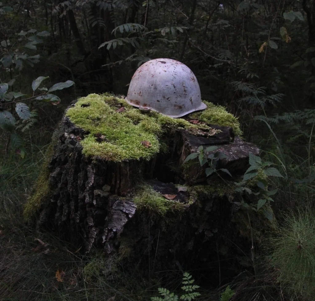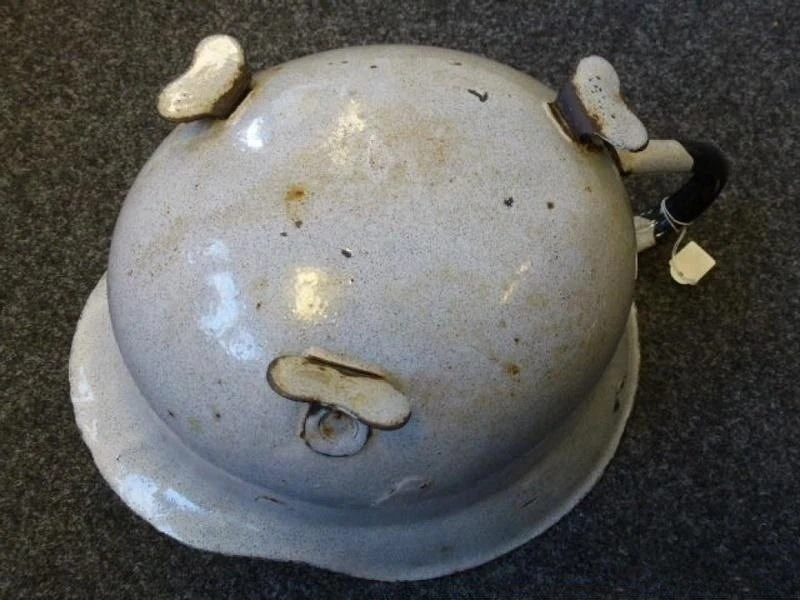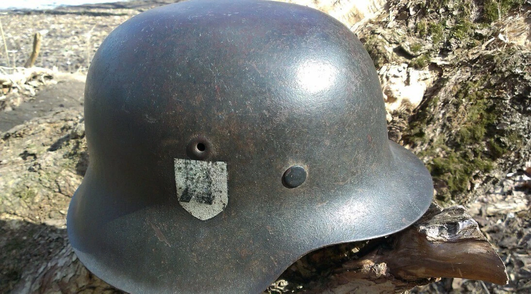 Найденная поисковиками каска обр. 1940 года в зимнем камуфляже.