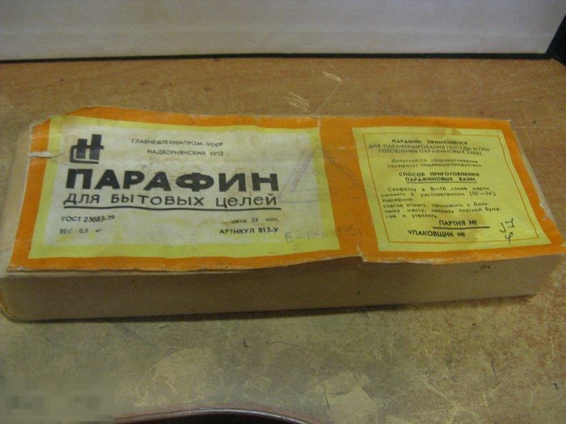 Медицина в годы Великой Отечественной войны не могла обойтись без парафина. Его назначали при отёках после ранений, долго не проходящих язвах, при поражении периферических нервов, применяли при гнойных ранах и свежих переломах.