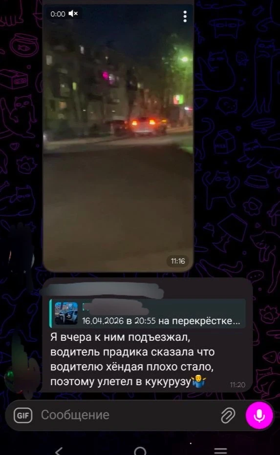 Вчера, 16.04.2026 в 20:55 на перекрёстке Солнечная-Погодаева ...