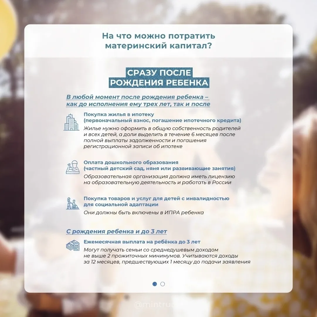 Как распорядиться материнским капиталом? В наших карточках вы найдете подробную информацию и полезные советы! 📚 Узнайте, на что можно потратить средства, какие документы понадобятся и как правильно оформить все необходимые процедуры. 📝 Не упустите возможность использовать маткапитал максимально эффективно для улучшения условий жизни вашей семьи! 👨👩👧👦