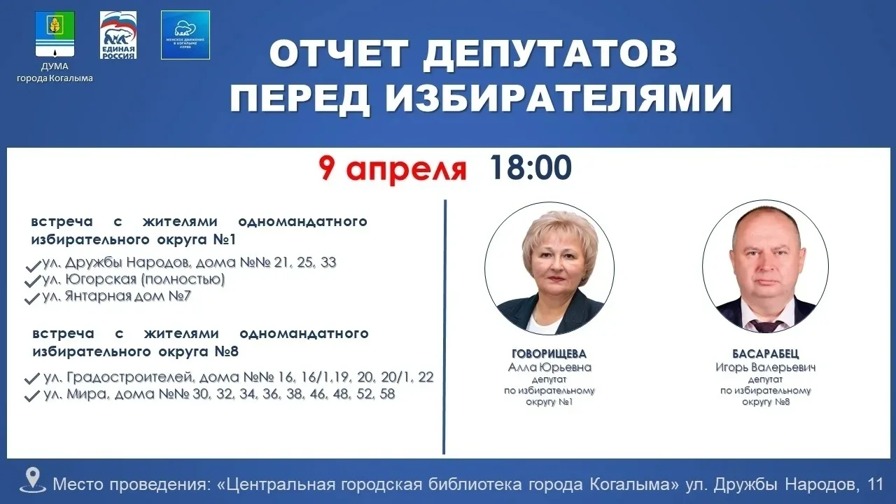 Завтра, 9 апреля, в Центральной городской библиотеке состоится важное событие — встреча с депутатами Думы города от партии «Единая Россия». 📅📚 В рамках отчета о проделанной работе депутаты расскажут о достигнутых результатах, планах на будущее и ответят на все ваши вопросы. 📊🗣️