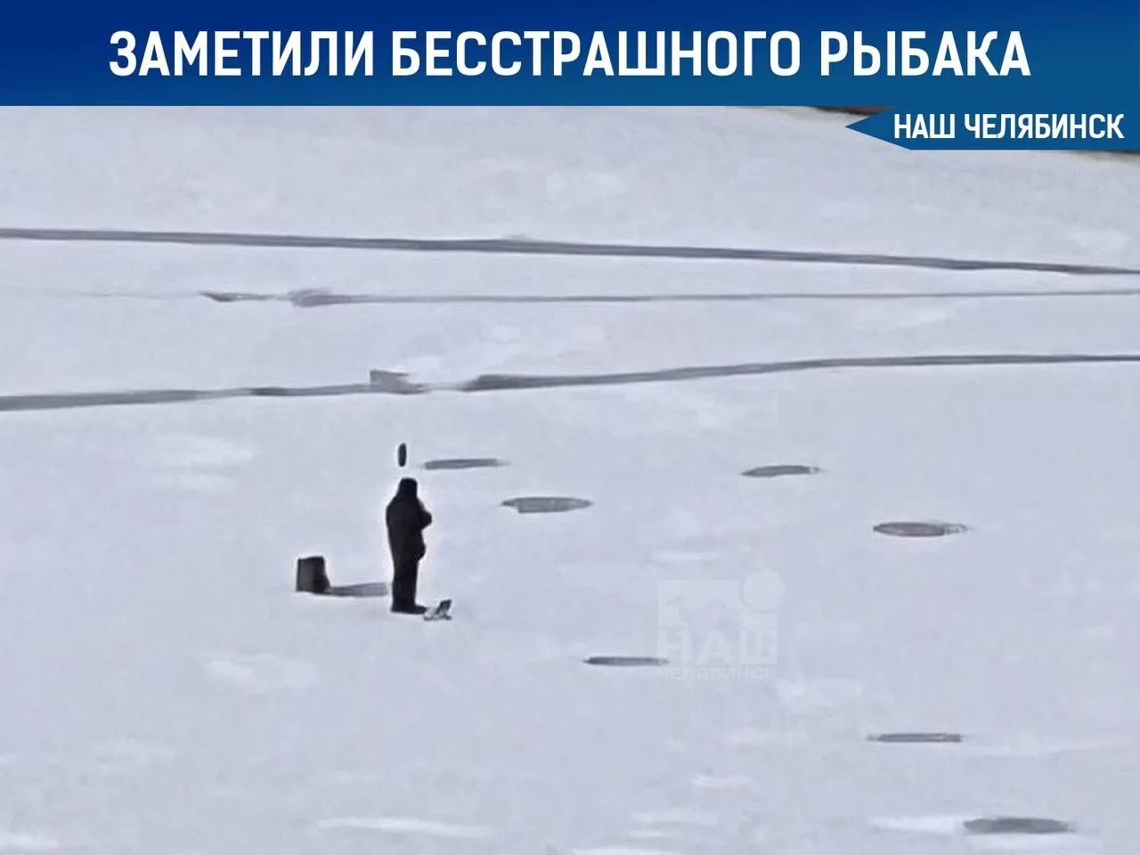😨 Бесстрашного рыбака заметили на реке Миасс.