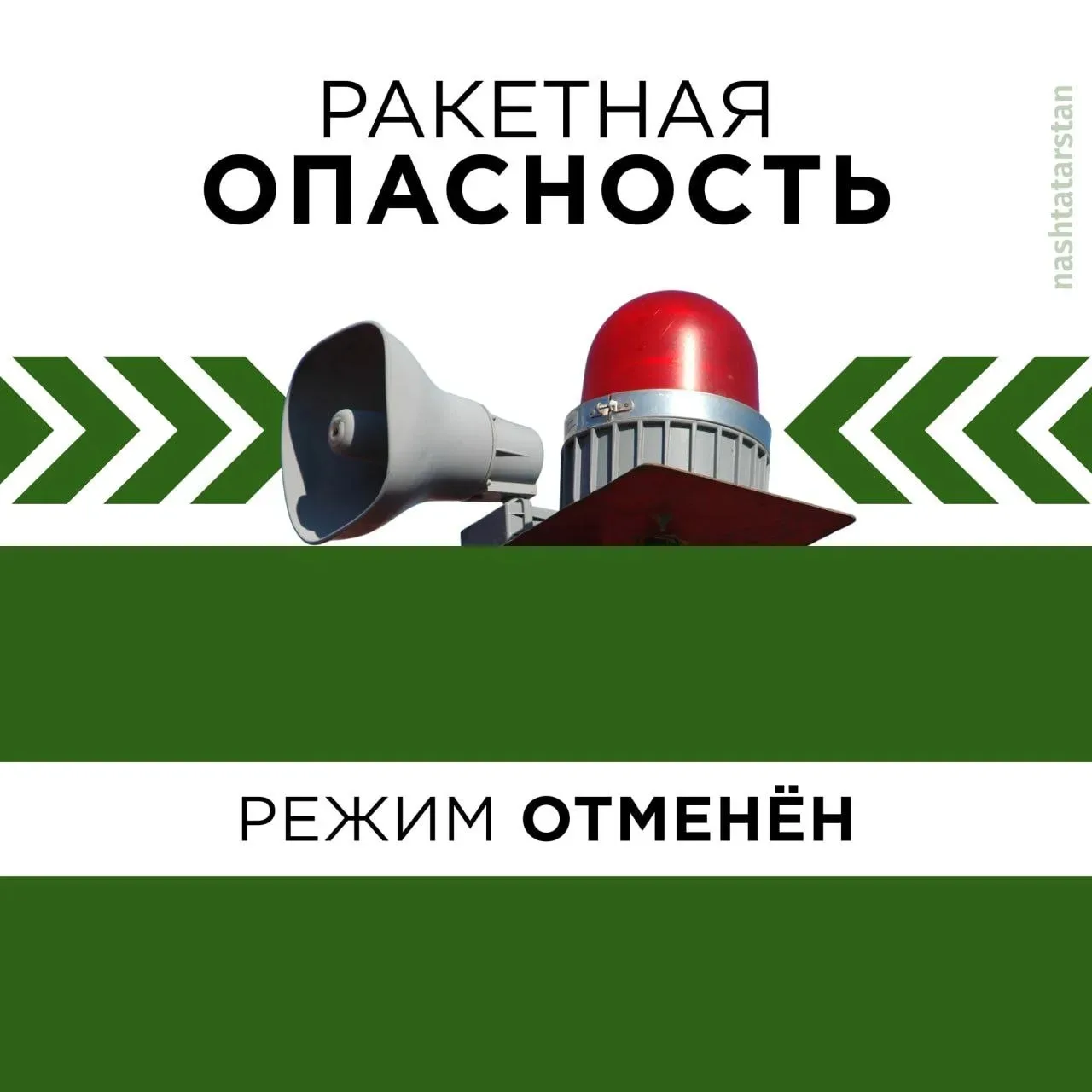 ❗️Режим «Ракетная опасность» на территории Республики Татарстан отменен.