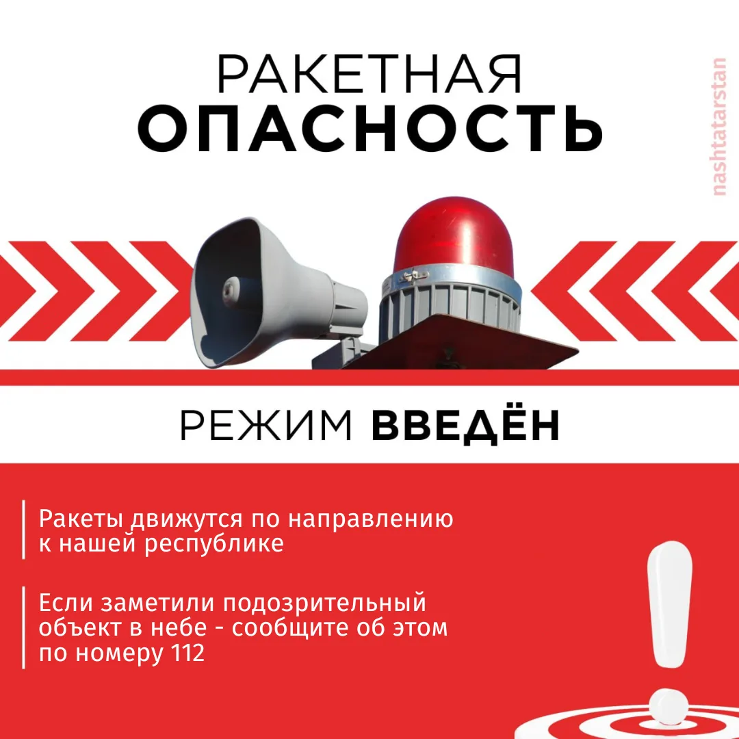 🔴 Режим вводится в случае выявления ракет, движущихся по направлению к нашей республике.