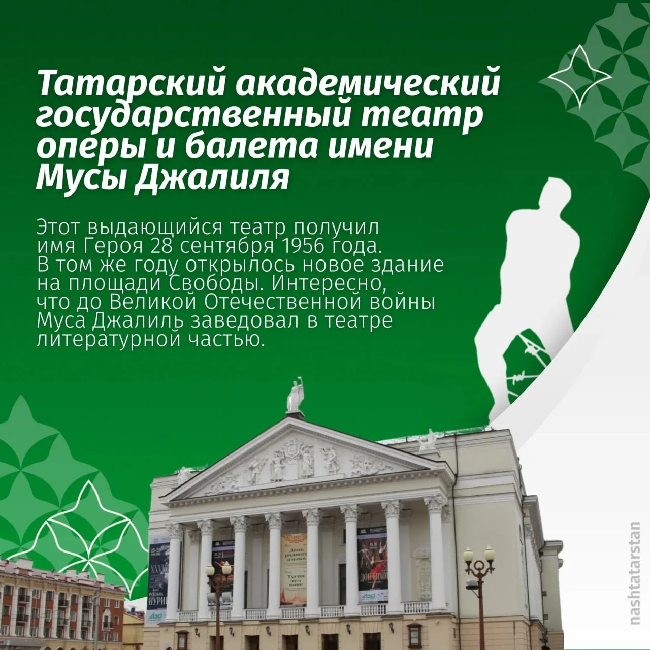 В честь юбилея Героя-поэта предлагаем пройти небольшой экскурc – от памятников и театра до транспорта и научных объектов, которые носят имя Мусы Джалиля. Это знаки памяти о вкладе поэта в культуру и историю Татарстана.