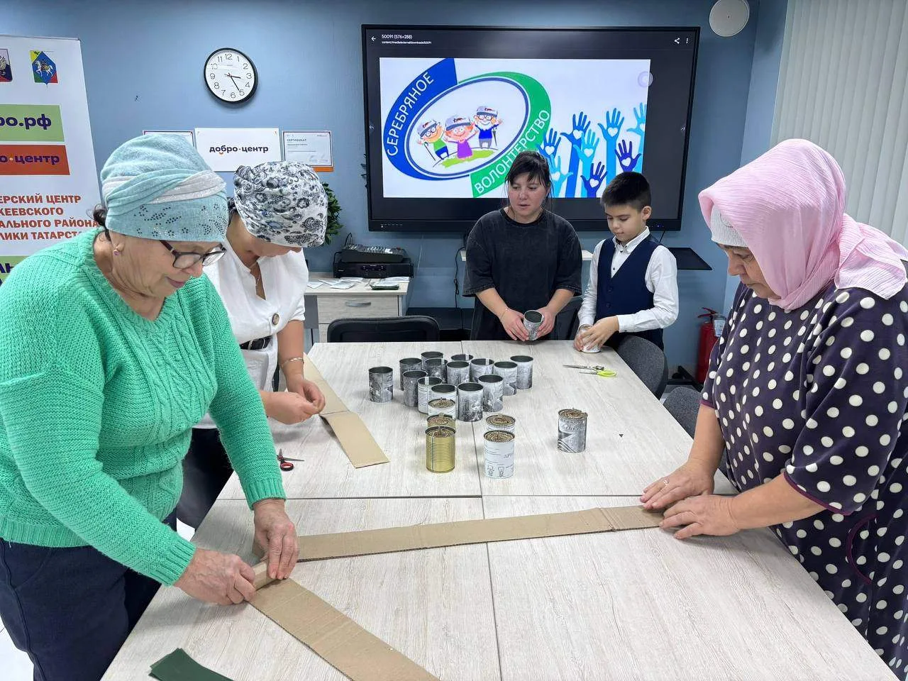 🔹Серебряные волонтеры из Алькеевского района плетут маскировочные сети и изготавливают окопные свечи.