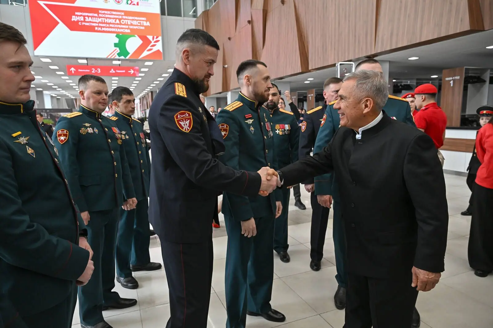 До начала мероприятия Раис Татарстана встретился с участниками программы «Батырлар. Герои Татарстана», а также осмотрел специализированную выставку.