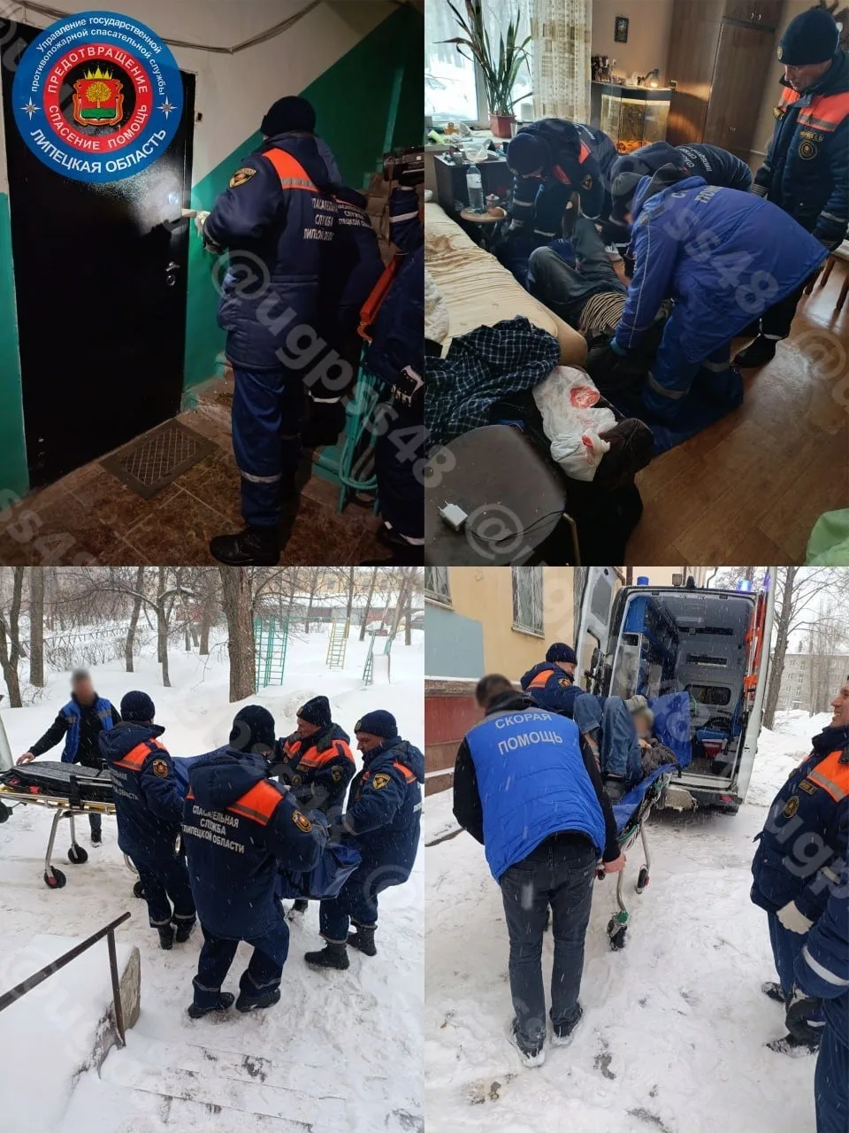 Спасатели оперативно прибыли на место и вскрыли дверь. Мужчина оказался жив, однако самостоятельно передвигаться не мог. Его перенесли в автомобиль скорой помощи для госпитализации.