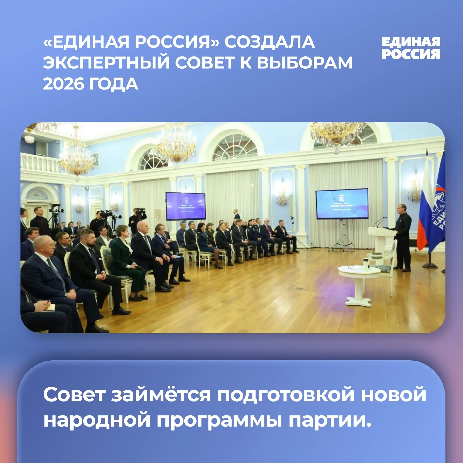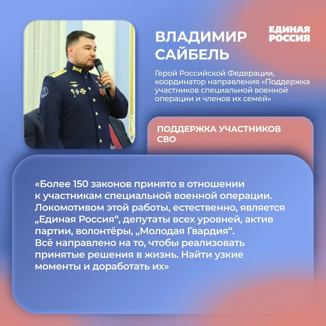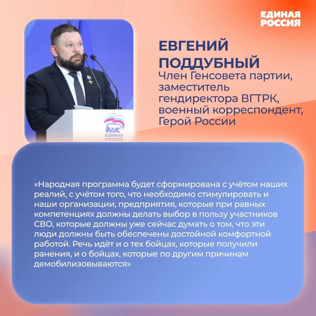 Партия создала экспертный совет для подготовки новой народной программы. В его состав вошли Герои России, участники специальной военной операции, представители науки, ракетно-космической и атомной отраслей, промышленности, бизнеса, экономики, общественных объединений и профсоюзов.