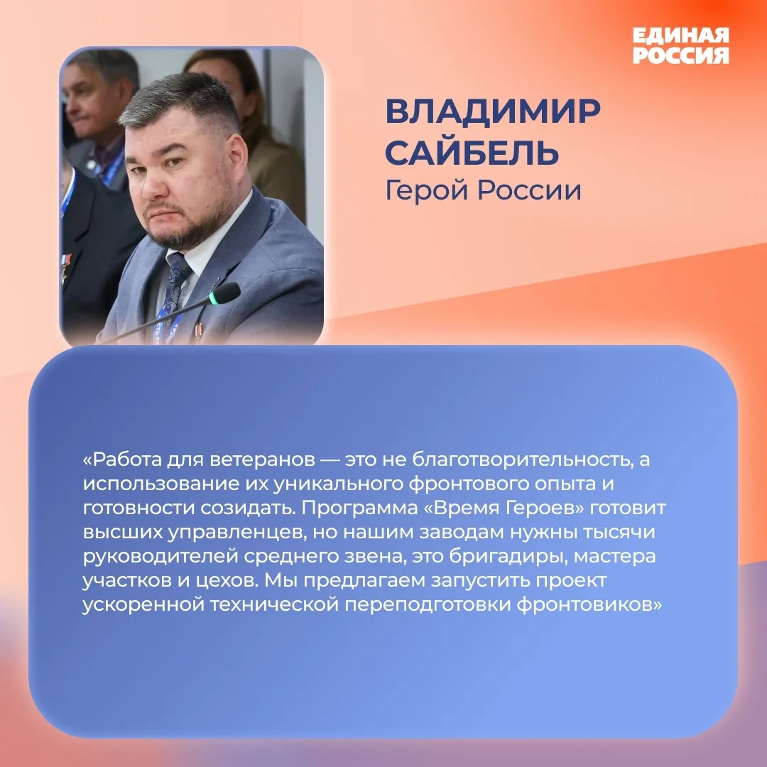 Главный акцент — промышленность, технологический суверенитет, поддержка отечественных производителей и вовлечение ветеранов СВО в экономику.
