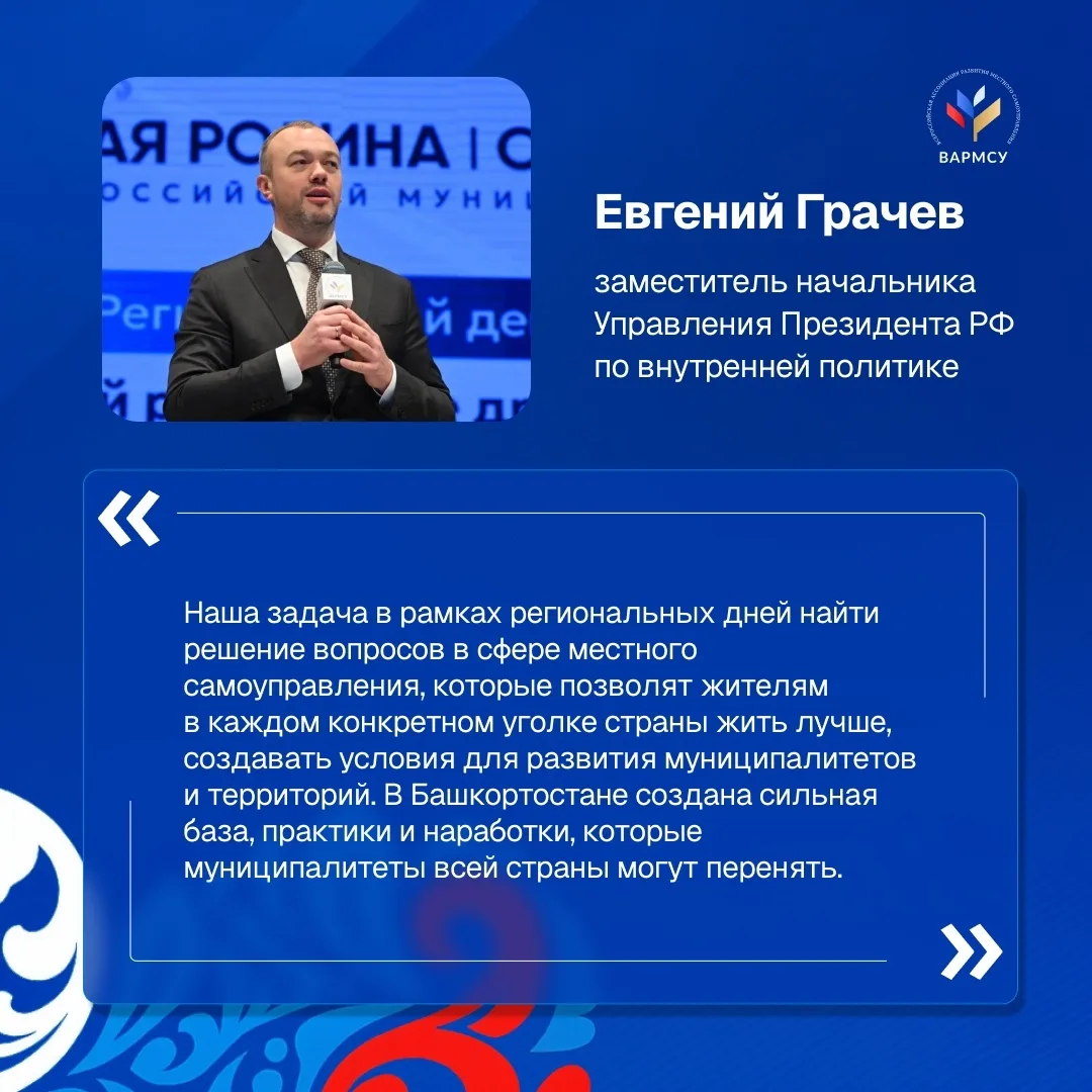В Уфе прошли региональные дни III Всероссийского муниципального форума «МАЛАЯ РОДИНА — СИЛА РОССИИ». Мероприятие состоялось в Республике Башкортостан и было организовано ВАРМСУ.