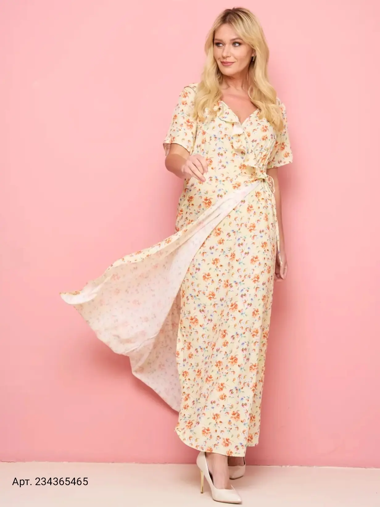 🔸Блузка светло-желтая, 100% хлопок, вырез горловины V-образный, воланы, размеры от 40 до 60, цена 5051 руб