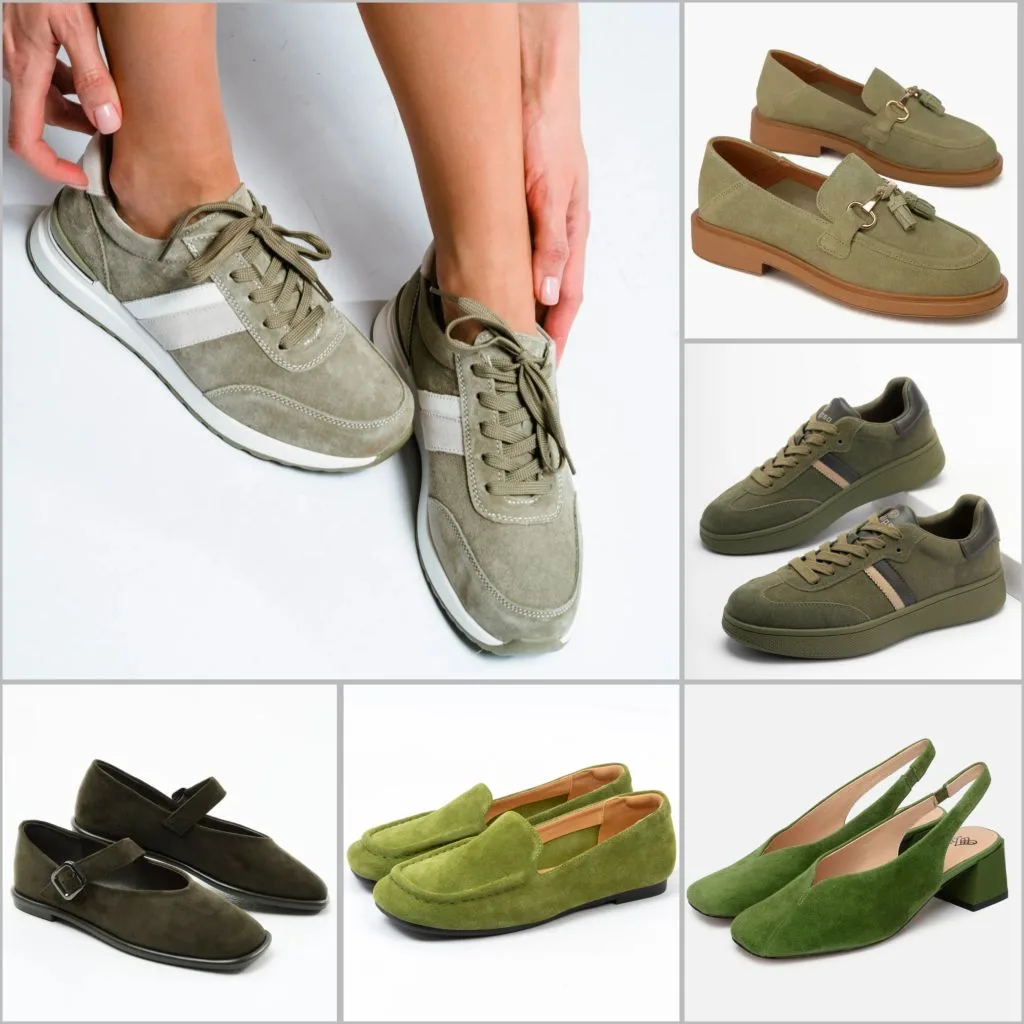🍃Кроссовки оливковые из натуральной замши, размеры от 36 до 41, цена 2651 руб